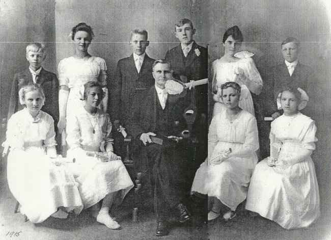 Holte), Dora J. Olson Holmes (bottom, extreme right) and Rev. Hans