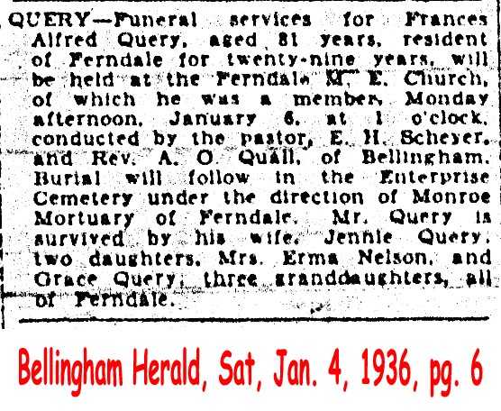 (From The Bellingham Herald, January 1, 1929) Submitted by site coordinator.QUERBACH, Everhard (d. 1907)