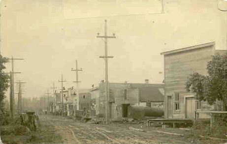 of the big tree stump is where the station is & then comes the R R tracks