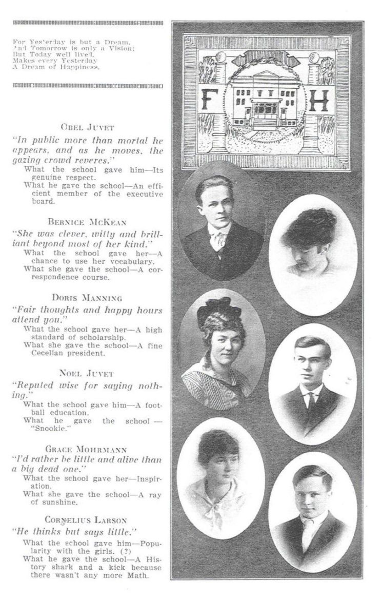 Obel JUVET, Bernice MCKEAN, Doris MANNING, Noel JUVE Grace MOHRMANN, Cornelius LARSON