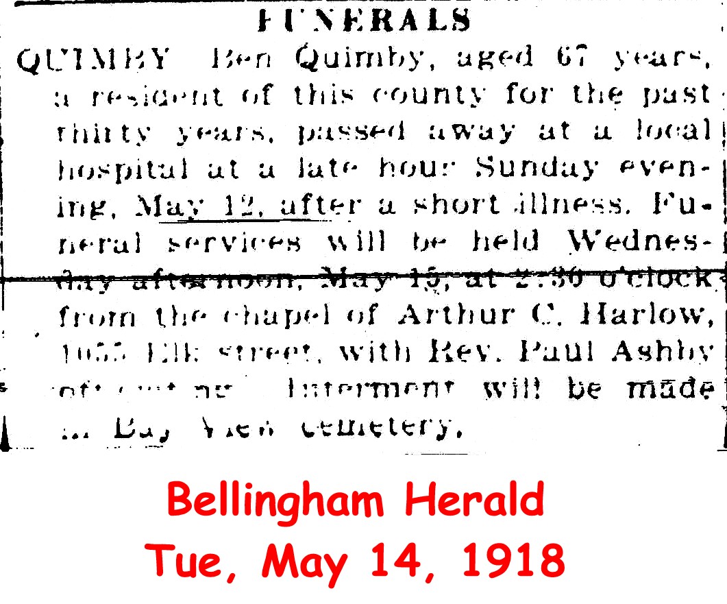 (From The Lynden Tribune, June 29, 1916) Submitted by site coordinator.QUIMBY, Mary E. (d. 1918)